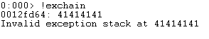 그리고 !exchain 명령을 통해 예외 핸들러의 상태를 확인해보자